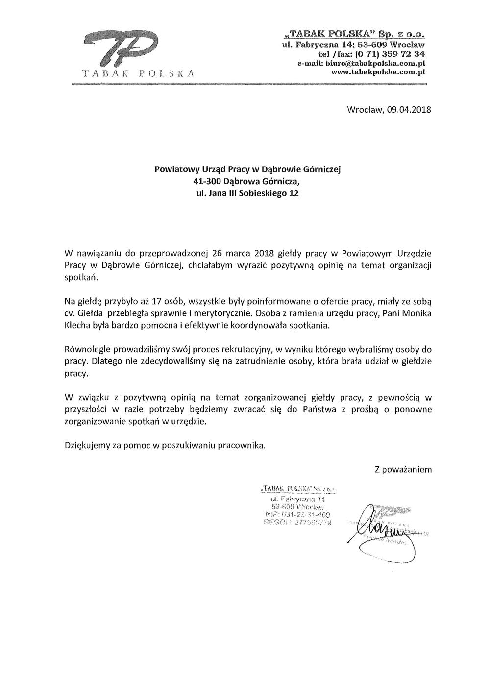 Referencje - Powiatowy Urząd Pracy w Dąbrowie Górniczej