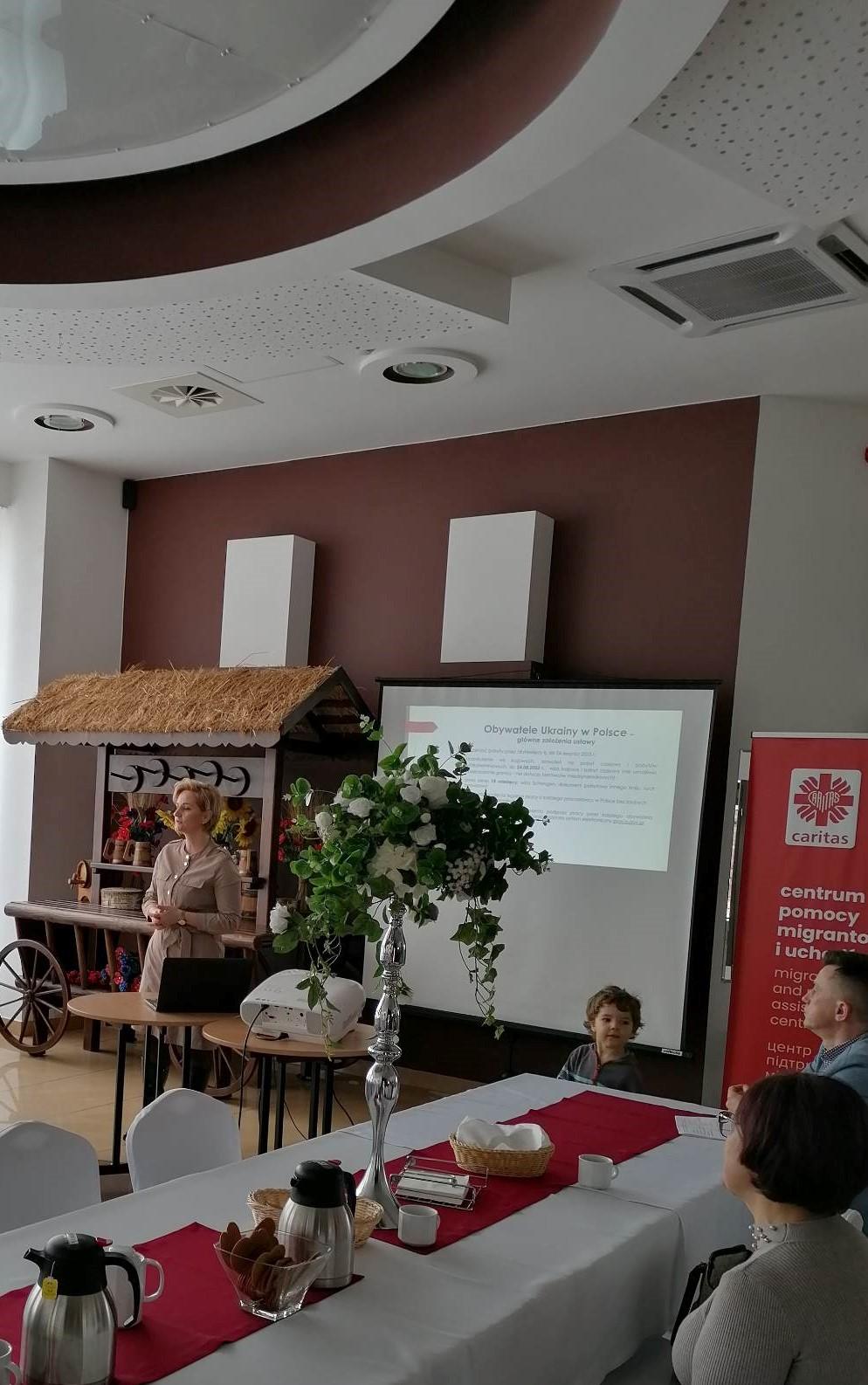 W dniu 09 marca 2023 roku w Hotelu Unibus w Bielsku Podlaskim odbyło się spotkanie informacyjne, skierowane do obywateli Ukrainy przebywających na terenie naszego powiatu.Przedsięwzięcie zostało zorganizowane przez Caritas Diecezji Drohiczyńskiej i miało na celu zachęcenie uchodźców do korzystania z usług Centrum Pomocy Migrantom i Uchodźcom w Belsku Podlaskim. W spotkaniu wzięli udział m.in. pracownicy Powiatowego Urzędu Pracy w Bielsku Podlaskim, którzy zapoznali obywateli Ukrainy z zasadami rejestracji w urzędzie pracy, poinformowali o dostępnych formach wsparcia oraz o aktualnej sytuacji na lokalnym rynku pracy.