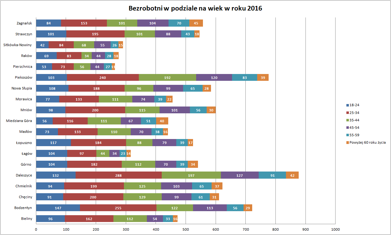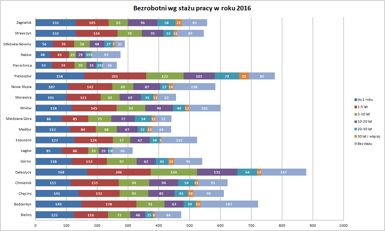 Statystyki - Stan bezrobocia w gminach 2016 - Powiatowy Urząd Pracy w Kielcach