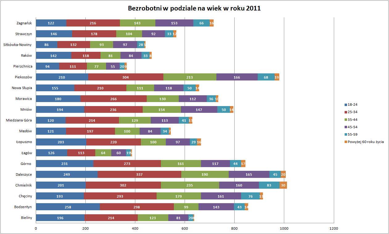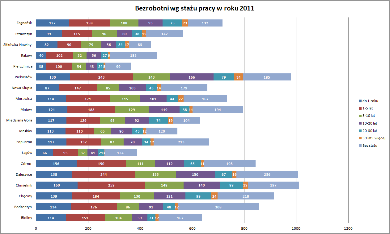 Statystyki - Stan bezrobocia w gminach 2011 - Powiatowy Urząd Pracy w Kielcach