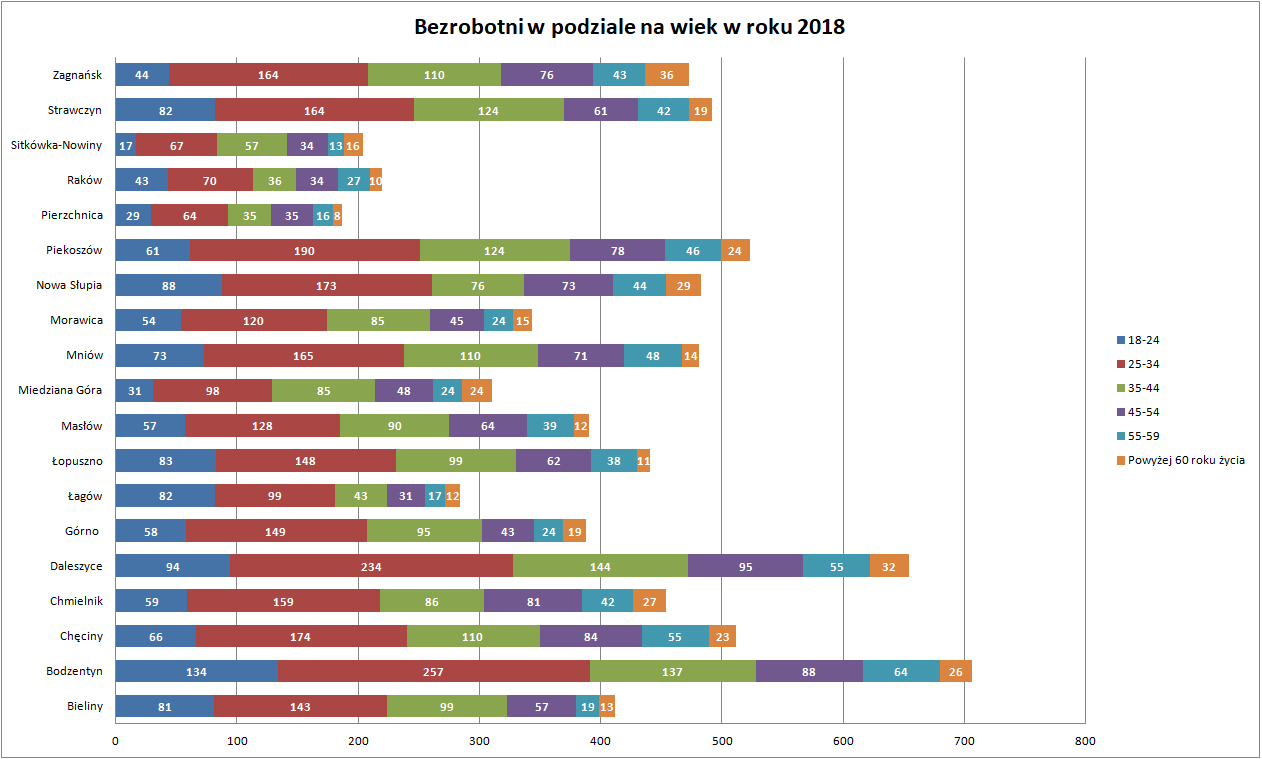 Statystyki - Stan bezrobocia w gminach 2018 - Powiatowy Urząd Pracy w Kielcach