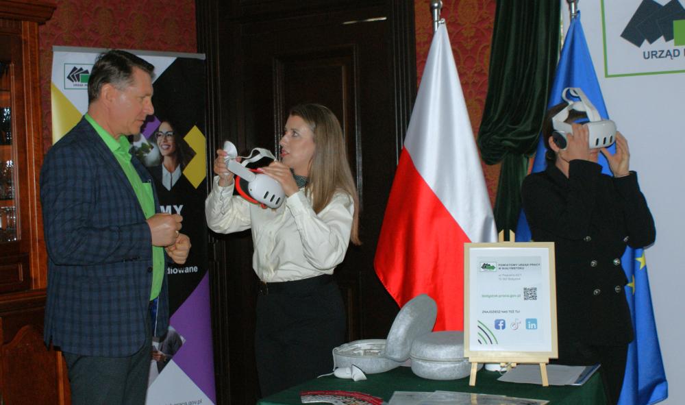 Czy można „zobaczyć”, jak będzie wyglądała wymarzona praca? W dalszej części spotkania na to pytanie starały się odpowiedzieć przedstawicielki Powiatowego Urzędu Pracy w Białymstoku Ewelina Pytel i Joanna Kubarska, prezentując możliwości, jakie dają gogle VR w doradztwie zawodowym. Uczniowie najpierw poznają aktualne trendy i prognozy na rynku pracy. Gogle VR, podczas realistycznej symulacji w technologii wirtualnej rzeczywistości, pomagają uczniom w podjęciu decyzji dotyczącej kształcenia, a co za tym idzie – przyszłego zawodu. Uczestnicy seminarium mieli również okazję do przetestowania urządzenia na własnej osobie.