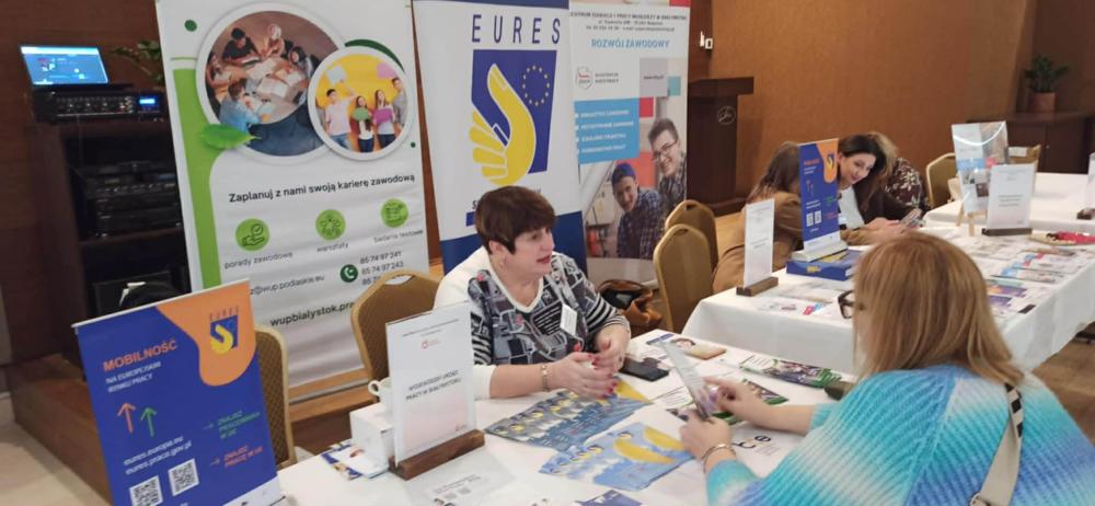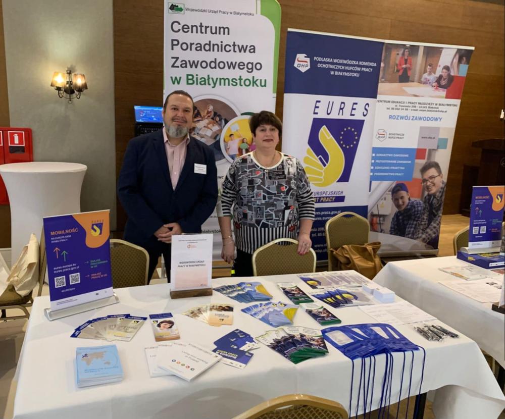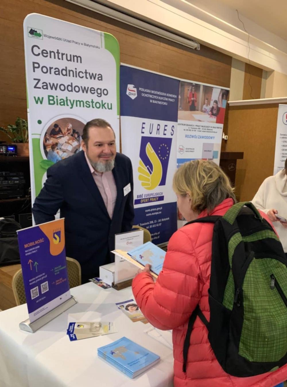 Stoisko informacyjne Centrum Poradnictwa Zawodowego w Białymstoku odwiedziły głównie osoby poszukujące pracy, informacji o zawodach i warsztatach. Uczestnicy targów otrzymali również informacje na temat możliwości, jaki daje sieć EURES w poszukiwaniu pracy za granicą.