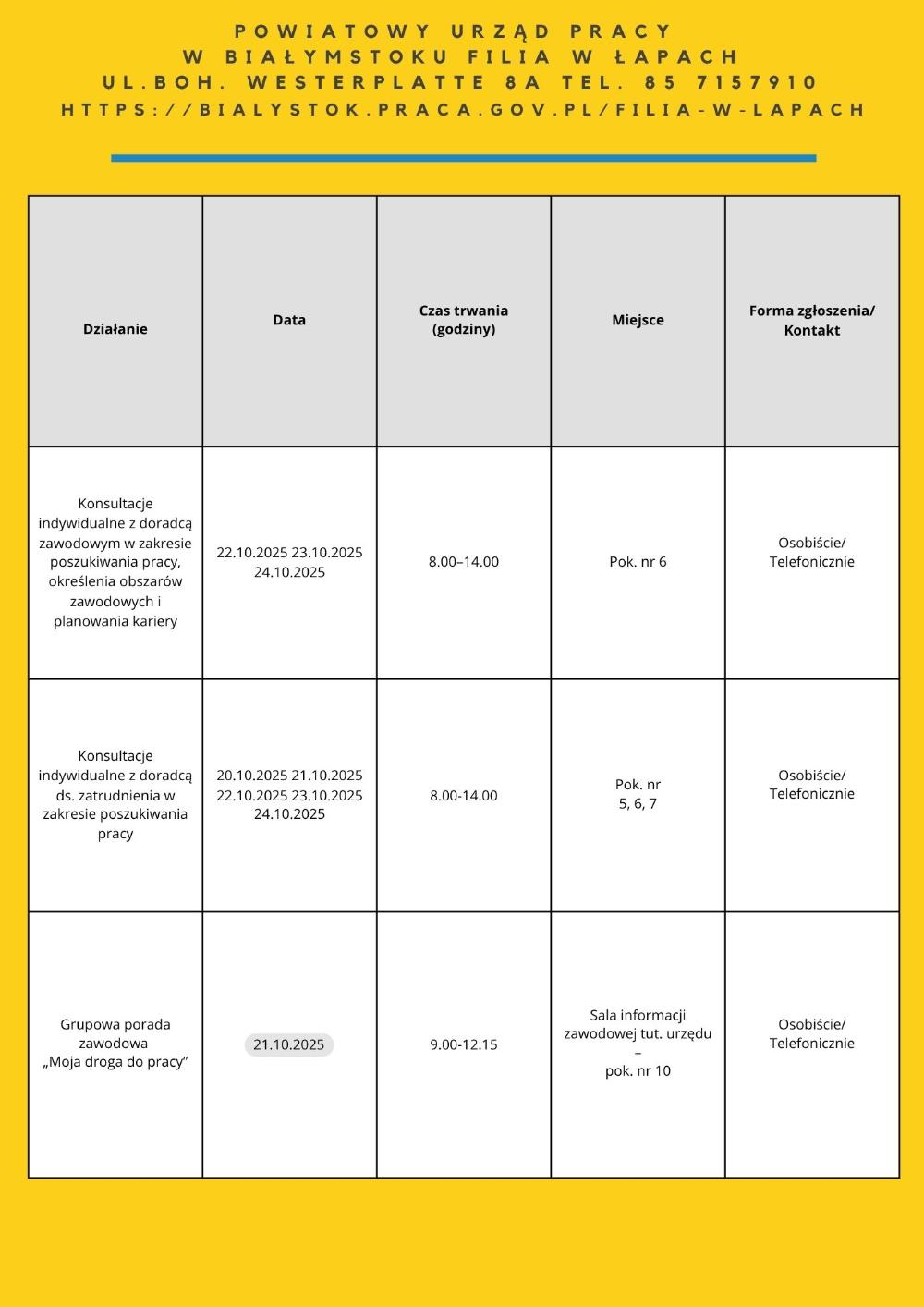 • „Moja droga do pracy” – 21.10.2025 – 7 os. – PUP Filia w Łapach