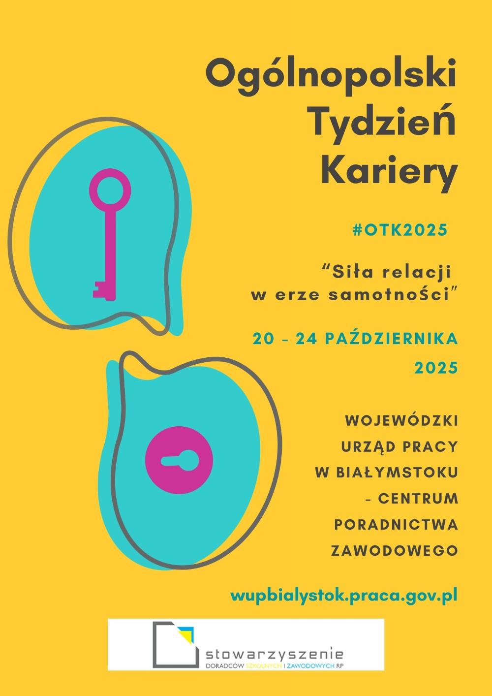 Od 20 do 24 października 2025 r. obchodzony był XVII Ogólnopolski Tydzień Kariery (OTK). Tegoroczna edycja odbyła się pod hasłem: „Siła relacji w erze samotności" Wojewódzki Urząd Pracy w Białymstoku wraz z Powiatowymi Urzędami Pracy województwa podlaskiego co roku przyłączył się do tej inicjatywy, celem promowania działań doradców zawodowych na rzecz planowania i budowania ścieżek karier oraz wzmacniania motywacji i odkrywania talentów, tak bardzo potrzebnych na rynku pracy.